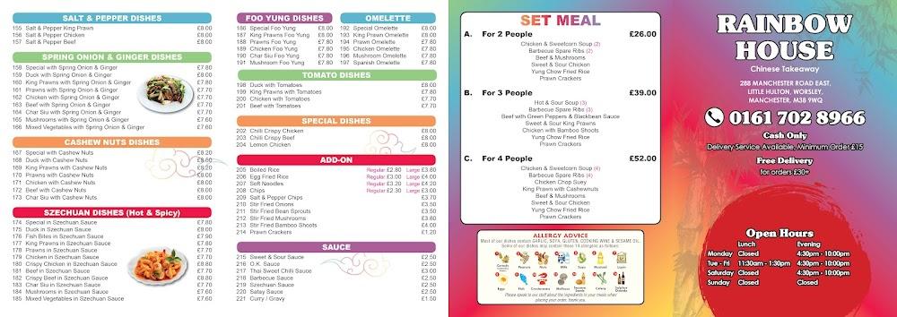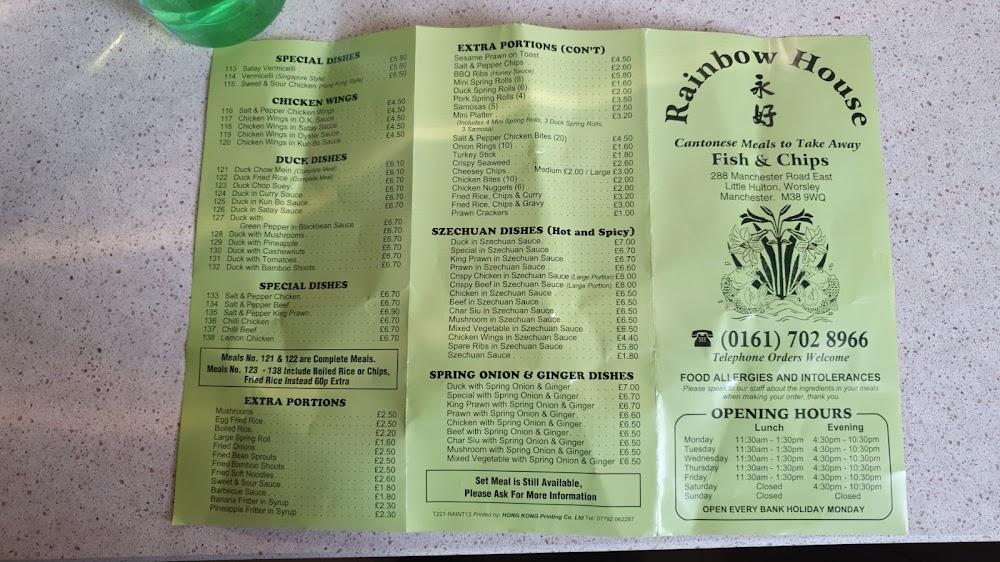 Nestled in Little Hulton, Rainbow House is a beloved Chinese takeaway and restaurant steeped in local charm. The restaurant's casual style makes it a fantastic spot for families, friends, or anyone in search of a quick meal after a long day. The fully wheelchair-accessible establishment ensures comfort for all guests, while striking the right balance between convenience and authenticity.